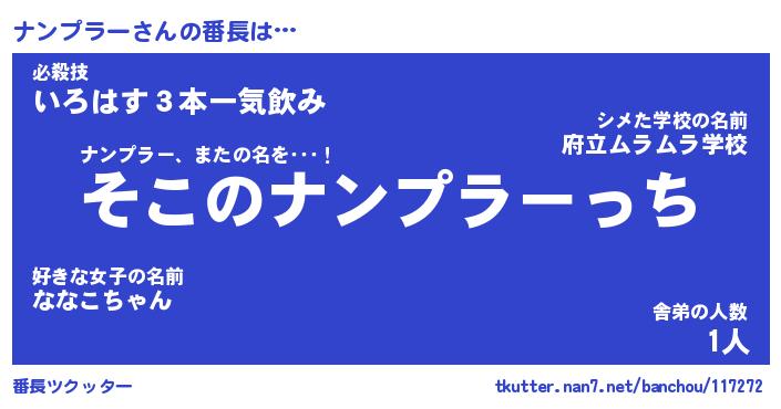 | ヘコむあだ名 | 『ナンもー』『酢こんぶ』『ナンお』 |