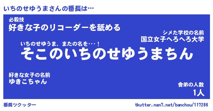 | 肩書あだ名 | 『いちのせゆうま御曹司』 |