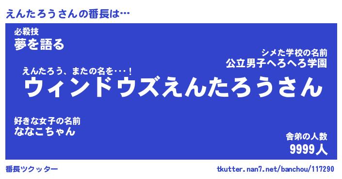 | 肩書あだ名 | 『えんたろう社長』『えんたろう総理大臣』 |