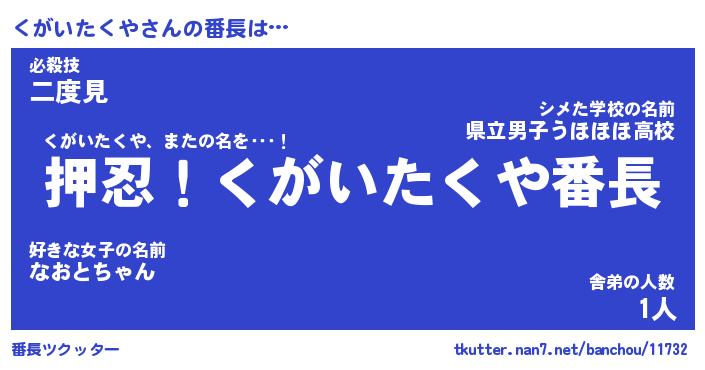 | 肩書あだ名 | 『くがいたくや社長』『くがいたくや班長』 |
