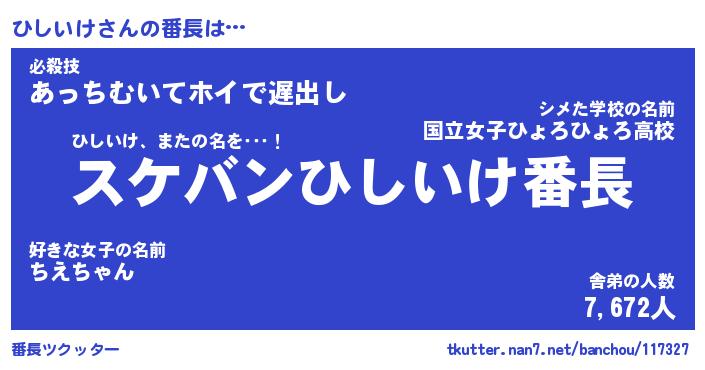 | 意味不明あだ名 | 『ペロリンひしいけ』『永久保存ひしいけ』 |