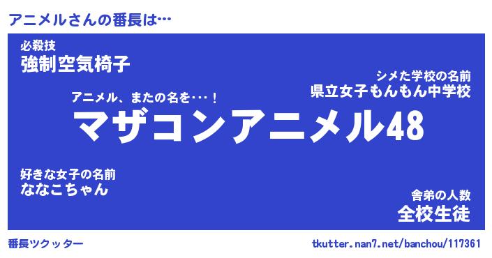 | ポケモン風あだ名 | 『アニチュウ』『アニメダネ』 |