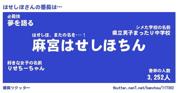 | 意味不明あだ名 | 『ペロリンはせしほ』『永久保存はせしほ』 |