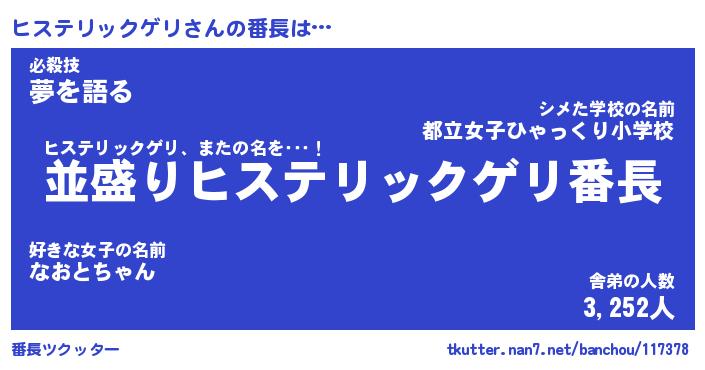 | ヒーロー風カッコイイあだ名 | 『スーパーヒステリックゲリ』 |