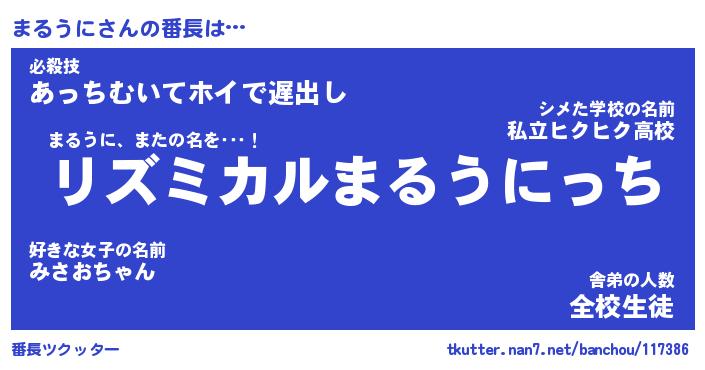| 意味不明あだ名 | 『ペロリンまるうに』『永久保存まるうに』 |