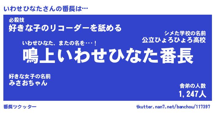 | 男性向けラノベタイトル風あだ名 | 『イワセヒナタアートオンライン』 |