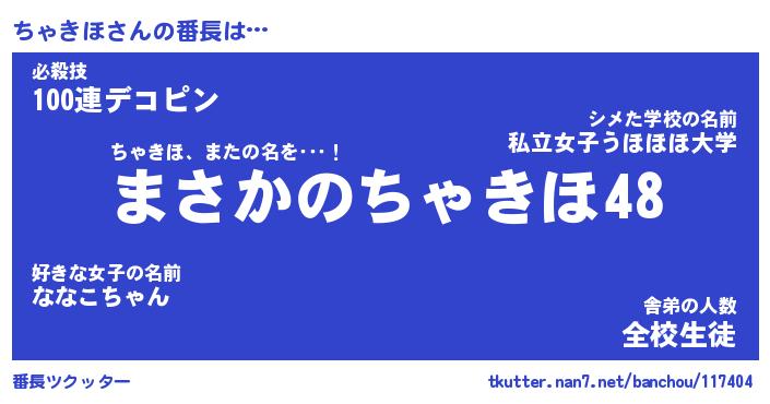 | 意味不明あだ名 | 『ペロリンちゃきほ』『永久保存ちゃきほ』 |