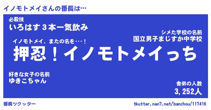 | ポケモン風あだ名 | 『イノチュウ』『イノモダネ』 |
