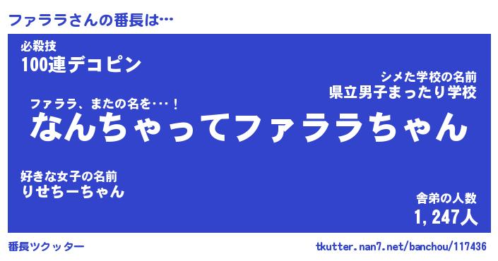 | 肩書あだ名 | 『ファララ店長』『ファララ国家主席』 |