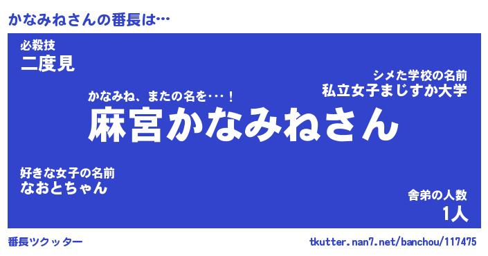 | 意味不明あだ名 | 『ペロリンかなみね』『永久保存かなみね』 |