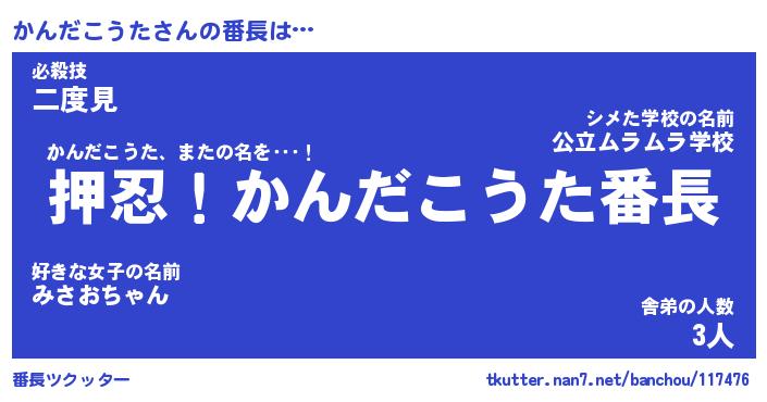 | 伝説のあだ名 | 『封印されしスナイパーかんだこうた』 |