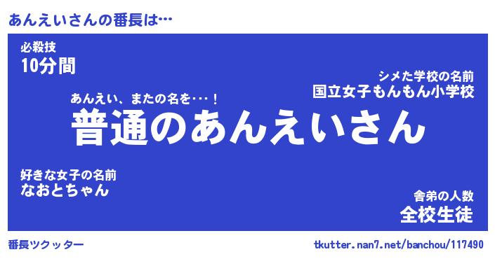 | 意味不明あだ名 | 『ペロリンあんえい』『永久保存あんえい』 |