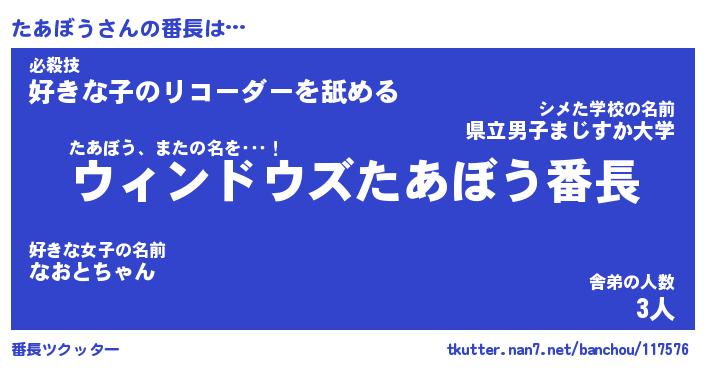 | 意味不明あだ名 | 『ペロリンたあぼう』『永久保存たあぼう』 |