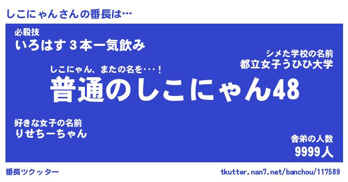 | ヒーロー風カッコイイあだ名 | 『スーパーシコニャン』『銀牙騎士シコ』 |