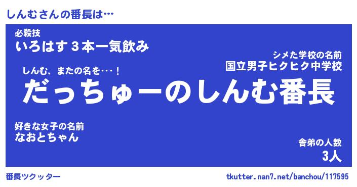 | ヒーロー風カッコイイあだ名 | 『スーパーシンム』『ウルトラしんむマン』 |