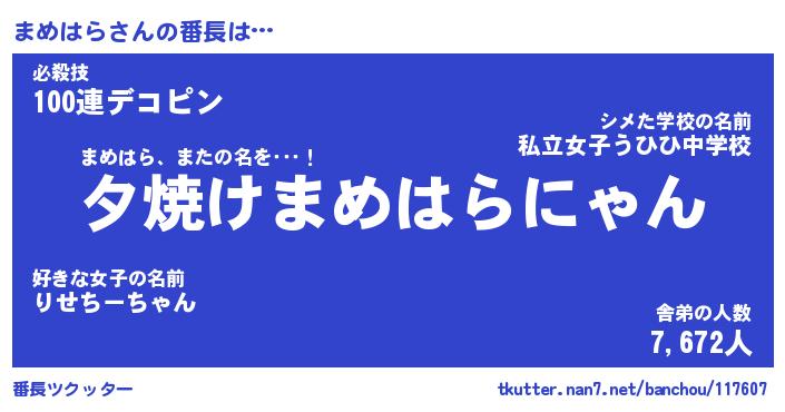 | ヘコむあだ名 | 『まめにゅー』『つくし』『まめっぺ』 |