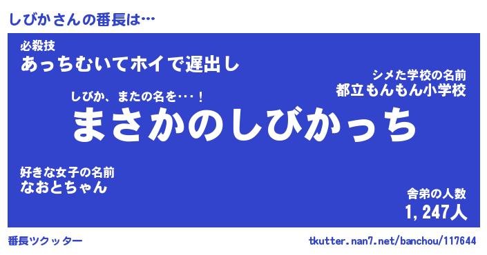 | 伝説のあだ名 | 『伝説のスナイパーしびか』 |