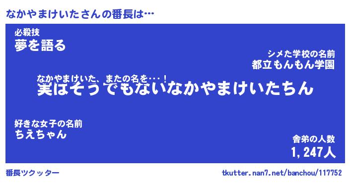 | ヘコむあだ名 | 『なかにゅー』『豆乳』『なかぷりん』 |