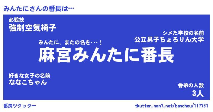 | 意味不明あだ名 | 『ペロリンみんたに』『永久保存みんたに』 |