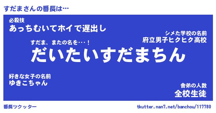 | 肩書あだ名 | 『すだま店長』『すだま総理大臣』 |