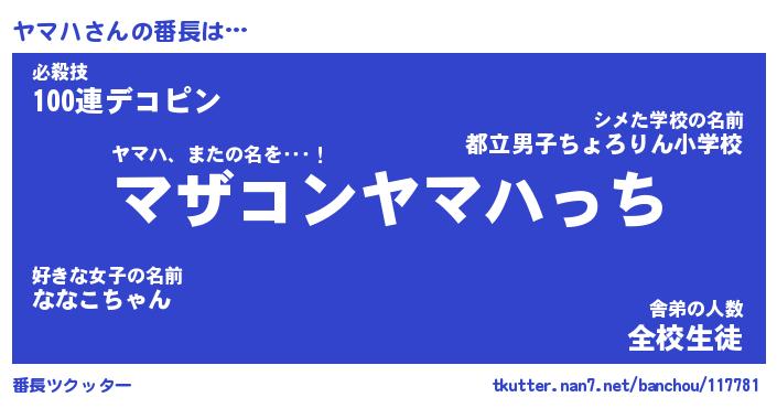 | ヘコむあだ名 | 『ヤマっふぃ~』『つくし』 |