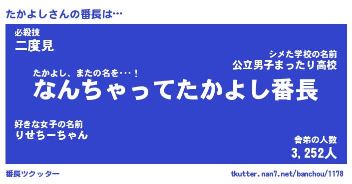 | 意味不明あだ名 | 『ペロリンたかよし』『永久保存たかよし』 |