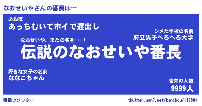 | ポケモン風あだ名 | 『ナオチュウ』『ナオセダネ』 |
