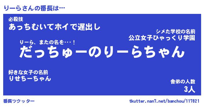 | 肩書あだ名 | 『りーら御曹司』『りーら国家主席』 |