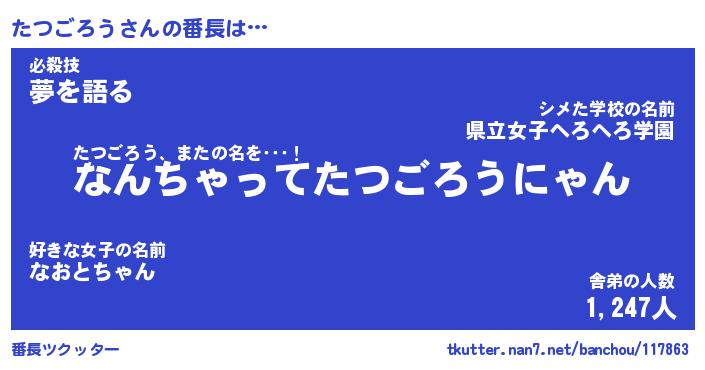 | ファンタジー風あだ名 | 『タツフェル』『エターナルタツゴロウー』 |