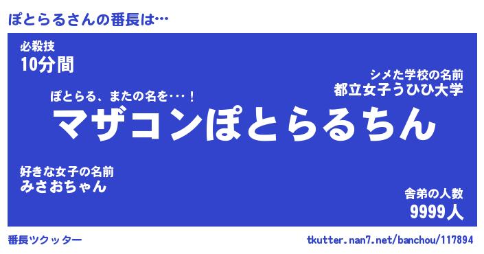 | 意味不明あだ名 | 『ペロリンぽとらる』『永久保存ぽとらる』 |