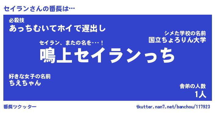 | 意味不明あだ名 | 『ペロリンセイラン』『永久保存セイラン』 |