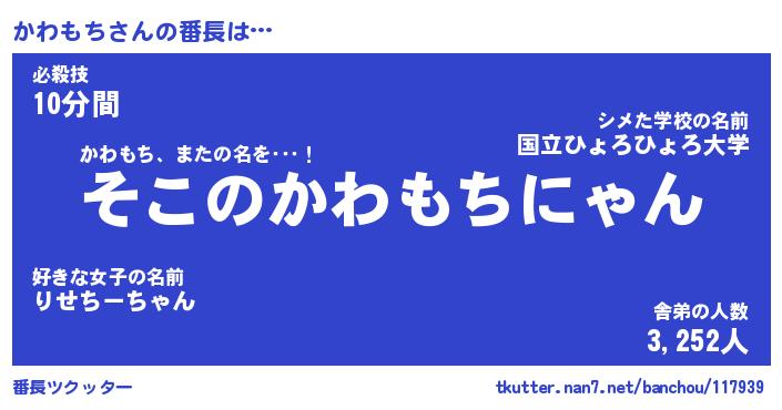 | ヒーロー風カッコイイあだ名 | 『スーパーカワモチ』『魔戒騎士カワ』 |