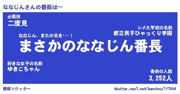 | 伝説のあだ名 | 『伝説のスナイパーななじん』 |