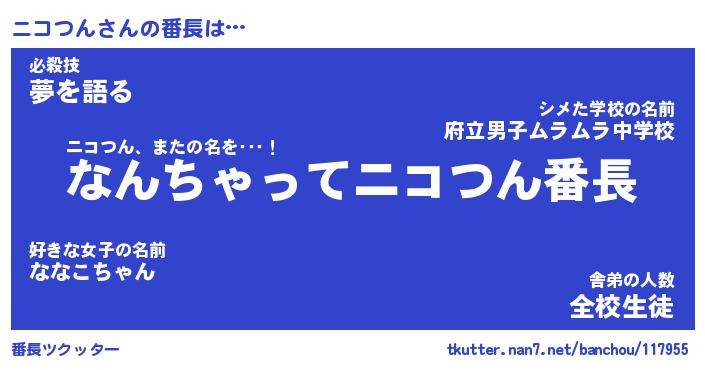 | 意味不明あだ名 | 『ペロリンニコつん』『永久保存ニコつん』 |
