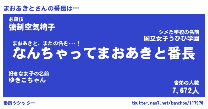 | ヘコむあだ名 | 『まおにゅー』『つくし』『まおを』 |
