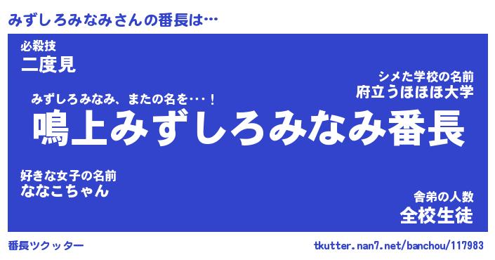 | 意味不明あだ名 | 『ペロリンみずしろみなみ』 |