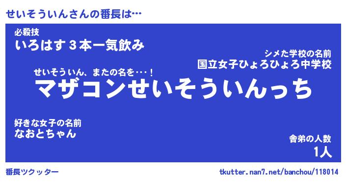 | ヘコむあだ名 | 『せいにー』『酢こんぶ』『せいを』 |