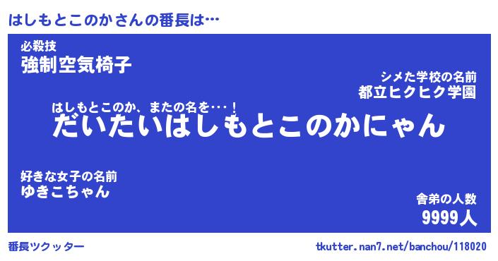 | ヘコむあだ名 | 『はしにー』『つくし』『はし太郎』 |