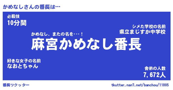 | 意味不明あだ名 | 『ペロリンかめなし』『永久保存かめなし』 |