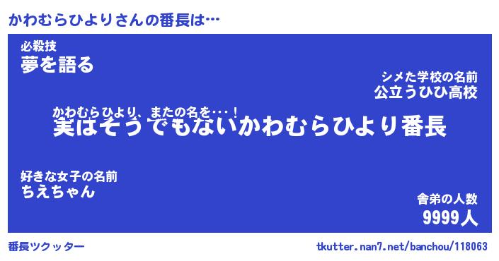 | 伝説のあだ名 | 『封印されしスナイパーかわむらひより』 |