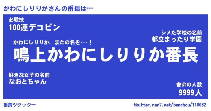 | ヒーロー風カッコイイあだ名 | 『スーパーカワニシリリカ』 |