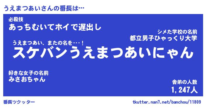 | ポケモン風あだ名 | 『ウエチュウ』『ウエマダネ』 |