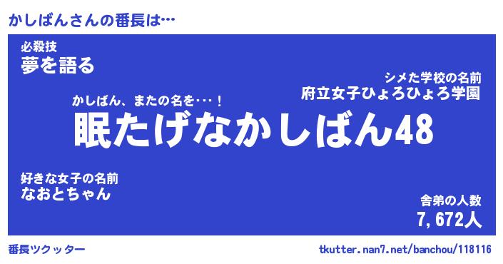 | 意味不明あだ名 | 『ペロリンかしばん』『永久保存かしばん』 |