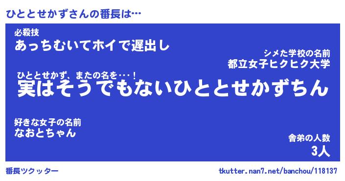 | 肩書あだ名 | 『ひととせかず社長』『ひととせかず班長』 |