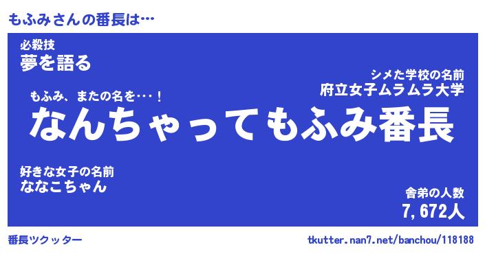 | 意味不明あだ名 | 『ペロリンもふみ』『もふみフォーエバー』 |