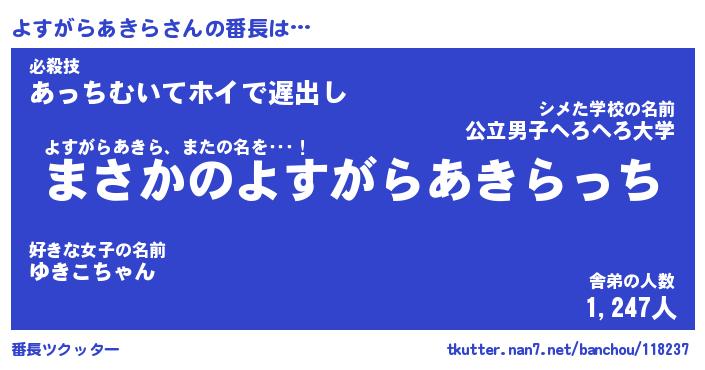 | ヒーロー風カッコイイあだ名 | 『スーパーヨスガラアキラ』 |
