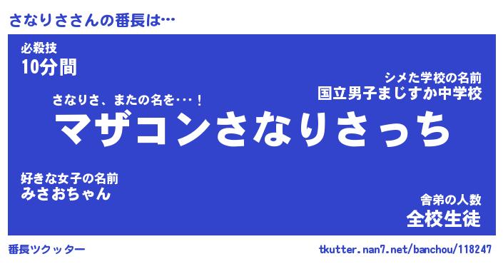 | 伝説のあだ名 | 『封印されしスナイパーさなりさ』 |