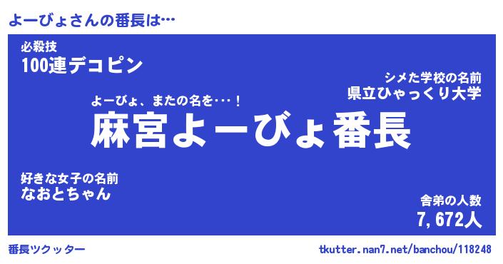 | 意味不明あだ名 | 『ペロリンよーびょ』『永久保存よーびょ』 |