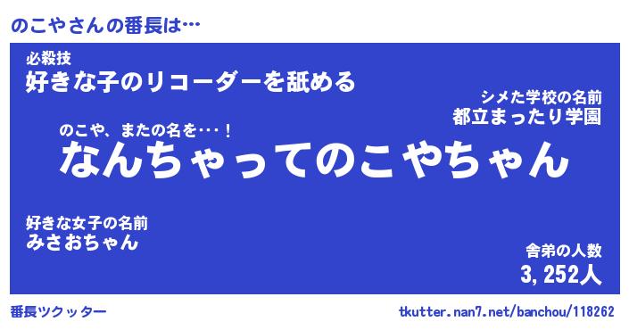 | ヒーロー風カッコイイあだ名 | 『スーパーノコヤ』『ウルトラのこやマン』 |
