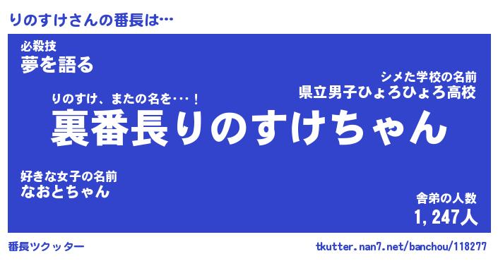 | 意味不明あだ名 | 『ペロリンりのすけ』『永久保存りのすけ』 |